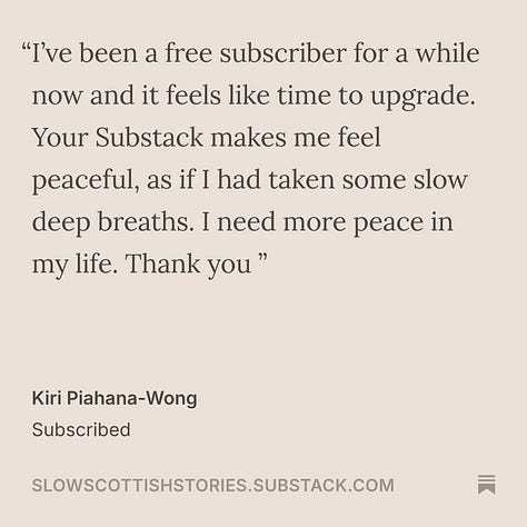 Now, she writes a story once a week, sharing musings from her slow life in the Scottish Highlands. She invites a special few for tea (where they inevitably chat about books!) and shares quiet letters with them, alongside glimpses into her nature diary and art journals, so they can help each other and nurture a kinder world where all are accepted.
